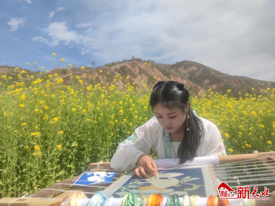 走进王云霞的工作室,除了墙上挂满刘云帆创作的刺绣作品外,你会看到绣架上的几幅半成品。这是她正在创作的刺绣艺术品,都是很有地域特色的题材,《飞天》《黄河母亲》《月牙泉》《水帘洞》《武山油菜花》,每一幅作品都浸透她的心血,每一幅作品都饱含她创作的灵感和激情,每一幅作品都体现出她对家乡的热爱,每一幅作品都承载着她的梦想和希望。《武山油菜花》系列共五幅,每幅需60来种彩线,绣水帘洞需70多种彩线,这些彩线就像道道彩虹,架起王云霞通向梦想和成功的桥梁。