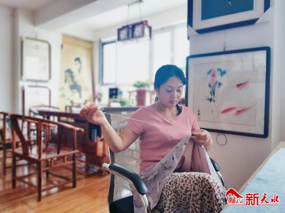 那是2016年一个晴朗的午后,王云霞在家里逗孩子玩。老公走过来说:“今天带你去看一样东西,保证你喜欢。”她问:“什么东西?”老公说:“去了你就知道了,保证你喜欢满意。”于是二人来到了县博物馆,走进文创展厅的瞬间,王云霞眼前豁然一亮,这不是自己一向很喜欢的刺绣吗?