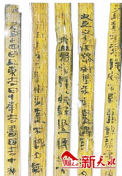 放马滩秦墓出土的首个“中国第一”,是考古学家从放马滩战国秦墓发掘整理出的《志怪故事》。它虽然很简疏,却是中国已知最早的、具有志怪小说性质的第一篇奇文。放马滩秦简的内容包括文字学,甲、乙两种《日书》和《志怪故事》等几方面成果,而这篇《志怪故事》的意义更为特殊。
