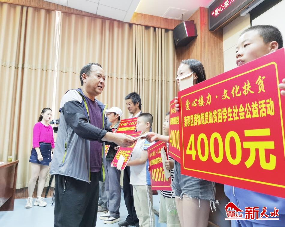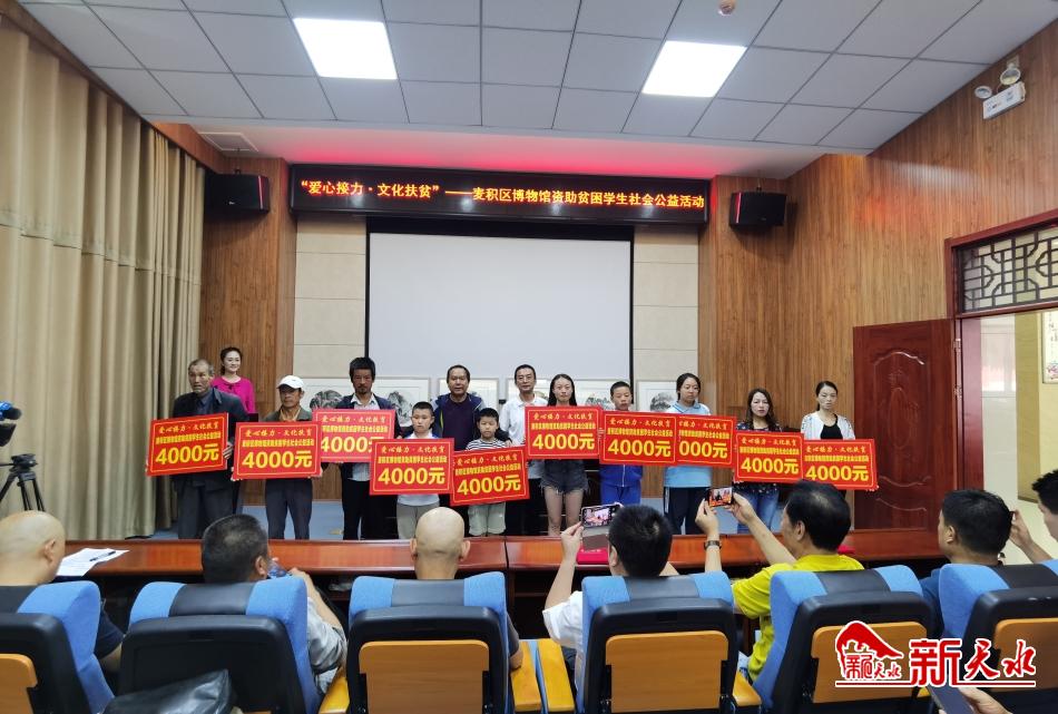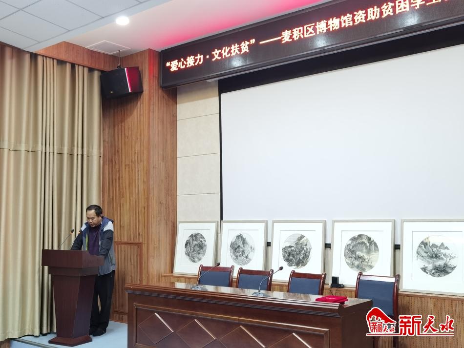 新天水讯【天水日报记者洪波】7月12日下午,由天水市麦积区博物馆主办的“爱心接力·文化扶贫”——画家孙剑资助贫困学生捐助活动在麦积区博物馆举行。