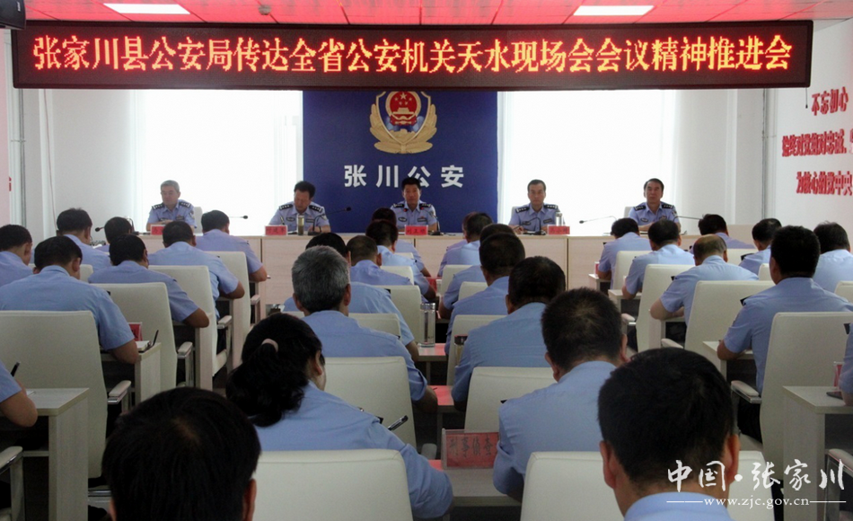 新天水讯 7月22日上午,张家川县公安局召开专题会议,传达学习全省公安机关重点工作推进会暨社会治安防控体系建设现场会会议精神,副县长、县公安局局长刘正顺主持会议并讲话。局党委班子成员、各部门负责人、各派出所所长、网侦大队全体民警、辅警参加了会议。