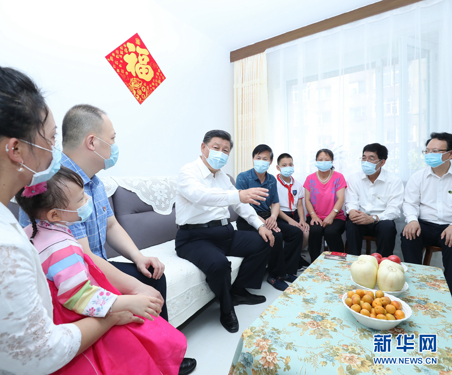 7月22日至24日,中共中央总书记、国家主席、中央军委主席习近平在吉林省考察。这是7月23日下午,习近平在长春市宽城区团山街道长山花园社区,同居民赵兴福一家唠家常。 新华社记者 鞠鹏 摄