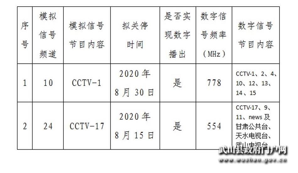 武山县模拟电视信号关停计划表