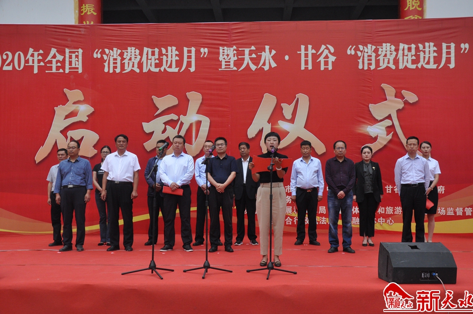 当天下午,在大像山下的分会场启动了2020年全国“消费促进月”暨天水-甘谷“消费促进月”活动,旨在积极响应国家和省、市关于“六稳”“六保”决策部署的需要,认真贯彻商务部开展全国消费促进月活动精神的具体措施,进一步落实全省经济“补欠账、保目标”调度电视电话会议精神,进一步营造消费氛围,打造消费引爆点,掀起甘谷县消费促进新高潮,释放被抑制、被冻结的消费需求,为全年消费加速回补注入新动能,畅通人流、物流、商流、资金流、信息流,挖掘城乡消费潜力,激活消费市场人气,提升消费水平,畅通经济良性循环,满足人民日益增长的美好生活需要。