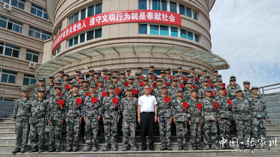 欢送大会上,党晓军为新兵代表佩戴大红花,并宣读了新兵入伍命令,全体新兵进行了入伍宣誓。