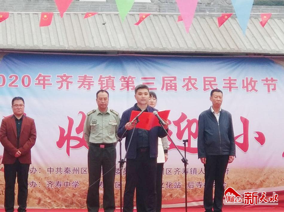新天水讯 秋风送爽,瓜果飘香,五谷丰稔。秦州区齐寿镇第三个农民丰收节如期举办,广大农民群众欢聚一堂,欢天喜地庆祝自己的节日,共享丰收喜悦!