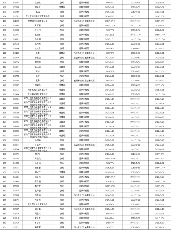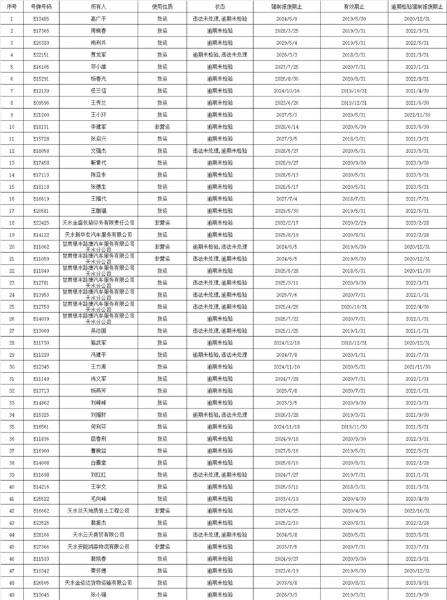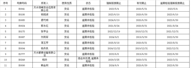 麦积区重型挂车、重型货车逾期未报废未年检曝光台