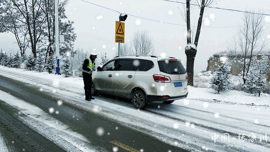受冷空气影响,张家川县出现大面积风雪冰冻天气,路面湿滑,给群众出行带来了困难,同时也给道路交通安全带来了极大的隐患。为减少道路交通事故的发生,确保广大群众的出行安全,张家川县公安局交警大队以雪为令,迅速部署,全员出动,坚守重点路段,及时采取多项应急措施,全力做好风雪天气交通应急管理工作,确保辖区路畅人安。