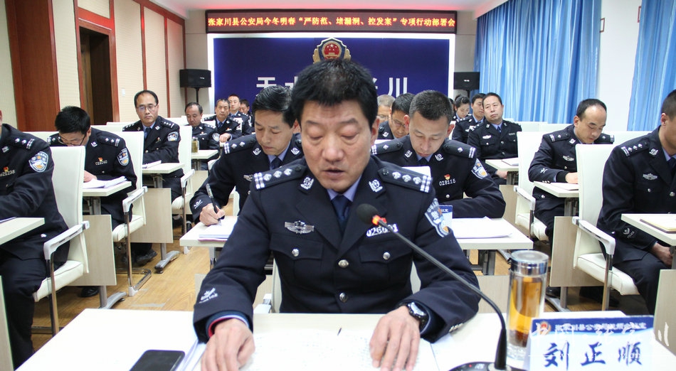 新天水讯 12月14日下午,张家川县公安局组织召开“严防范、堵漏洞、控发案”专项行动动员部署会,会议以视频形式开至派出所,副县长、县公安局局长刘正顺出席会议并作了动员讲话。会议宣读了《张家川县公安局今冬明春“严防范、堵漏洞、控发案”专项行动方案》,对今冬明春公安重点工作进行了部署安排。