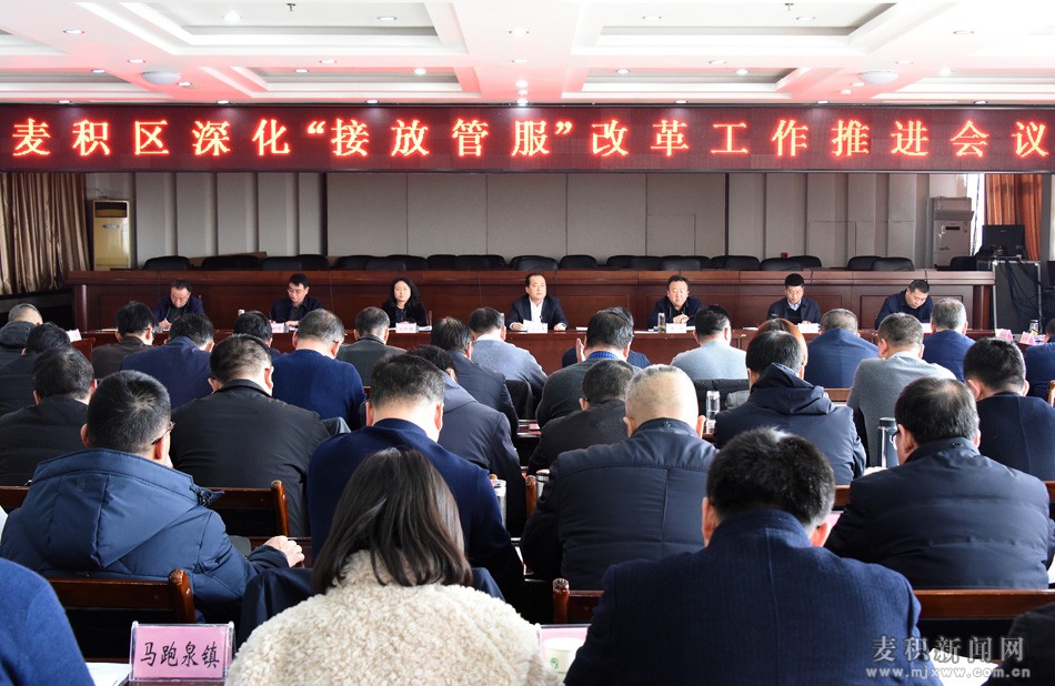 新天水讯 据麦积区融媒体中心消息 12月14日,麦积区召开“接放管服”改革工作推进会议,认真贯彻落实国家、省上“放管服”改革视频会议及全市深化“接放管服”改革推进政府职能转变领导小组会议精神,深入分析和查找全区当前“接放管服”改革工作面临的形势和存在的问题,安排部署下一阶段工作任务。
