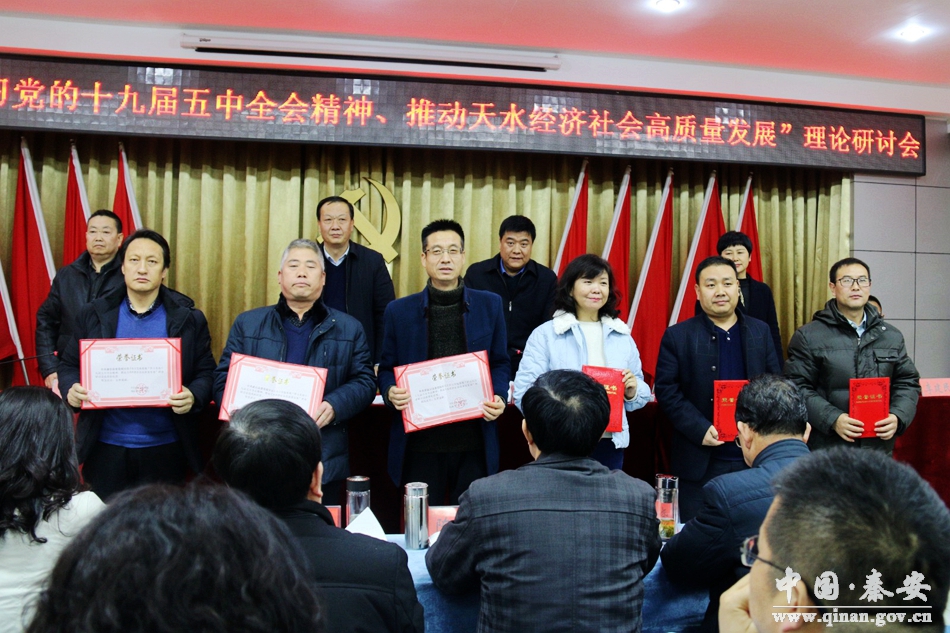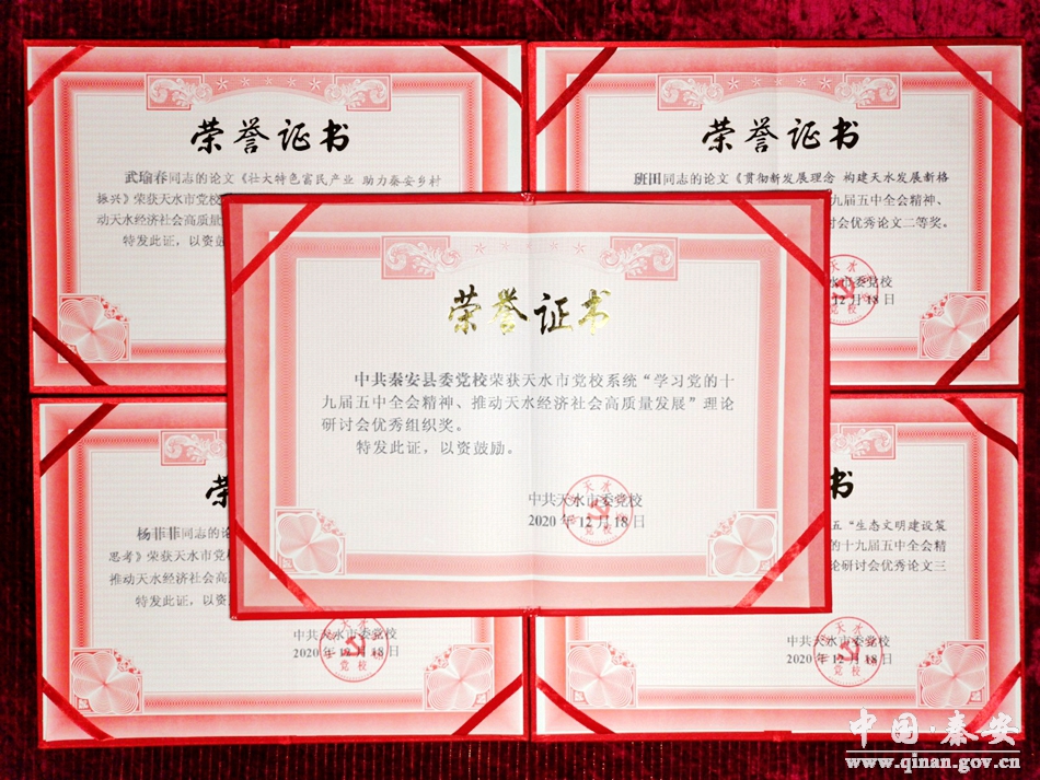 新天水讯 据秦安县融媒体中心消息 在12月18日召开的全市党校系统“学习党的十九届五中全会精神、推动天水经济社会高质量发展”理论研讨会上,秦安县委党校荣获优秀组织奖,参评论文《壮大特色富民产业 助力秦安乡村振兴》获得一等奖,《贯彻新发展理念构建天水发展新格局》《秦安县“十四五”农村产业发展的思考》获二等奖,《天水市“十四五”生态文明建设策略研究》获三等奖。