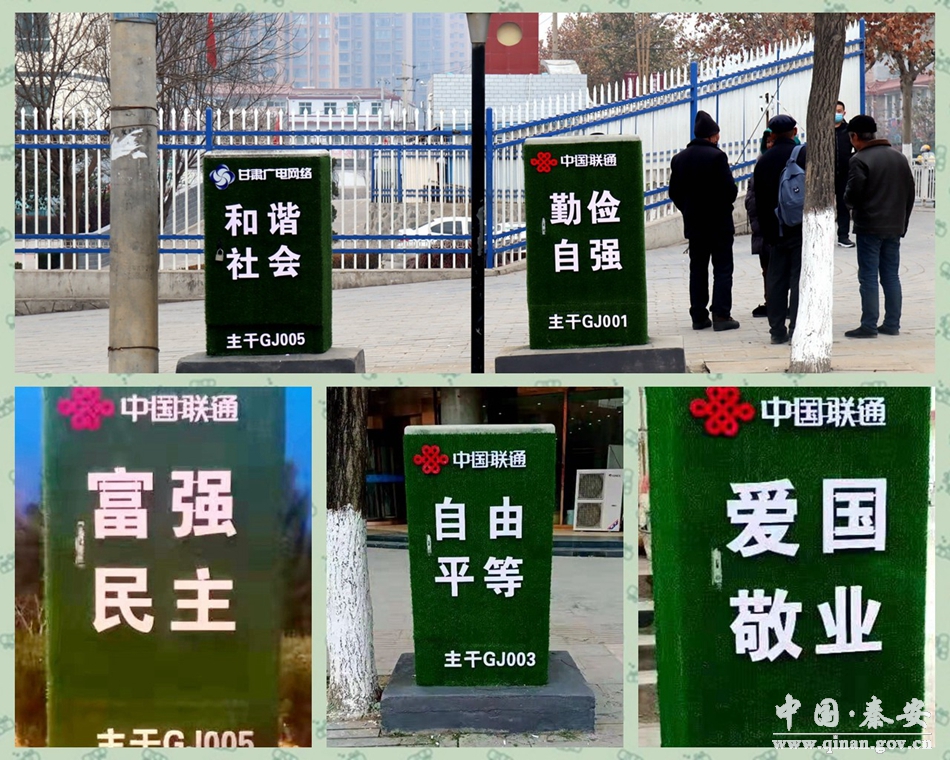 此次“城市部件”美化提升工作,按照“谁主管、谁负责”的原则,组织各单位确定专人进行实施。针对城市箱体不整齐、乱贴小广告等城市管理“顽疾”,各责任单位讨论完善设计方案,对箱体进行“绿皮”外包,包装的宣传内容为社会主义核心价值观、弘扬文明城市等,设计简洁美观,为秦安县城的美化增添了“靓点”。