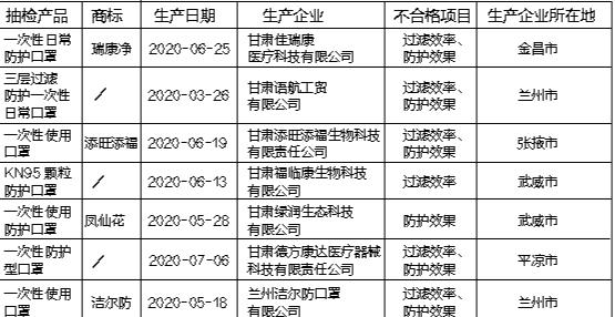 甘肃省非医用口罩质量抽查合格率仅为12.5% 7家企业7批次产品不合格