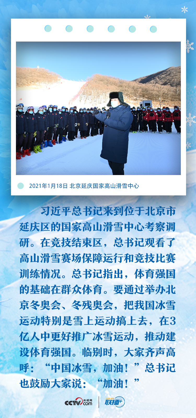联播+1月18日,习近平总书记在北京考察冬奥会、冬残奥会筹办工作。总书记先后来到位于北京市海淀区的首都体育馆和位于北京市延庆区的国家高山滑雪中心、国家雪车雪橇中心考察调研,了解运动场馆建设和运动员参赛备战等情况,看望慰问运动员、教练员和延庆赛区运行保障团队、建设者代表。