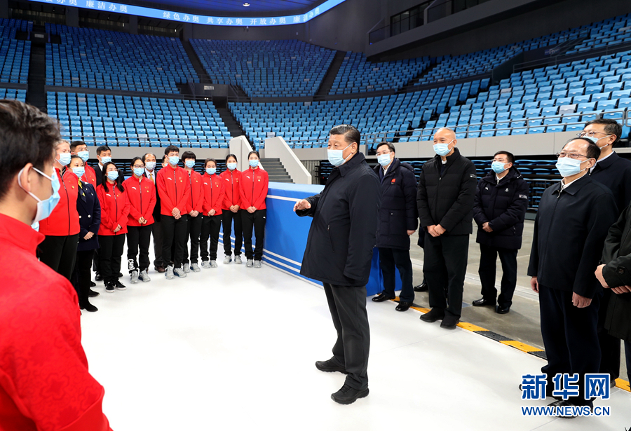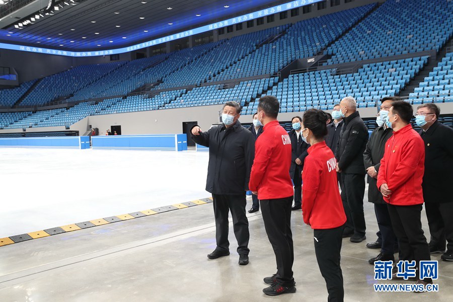 1月18日至20日,中共中央总书记、国家主席、中央军委主席习近平在北京、河北考察,并主持召开北京2022年冬奥会和冬残奥会筹办工作汇报会。这是18日上午,习近平在位于北京市海淀区的首都体育馆考察调研。新华社记者 鞠鹏 摄