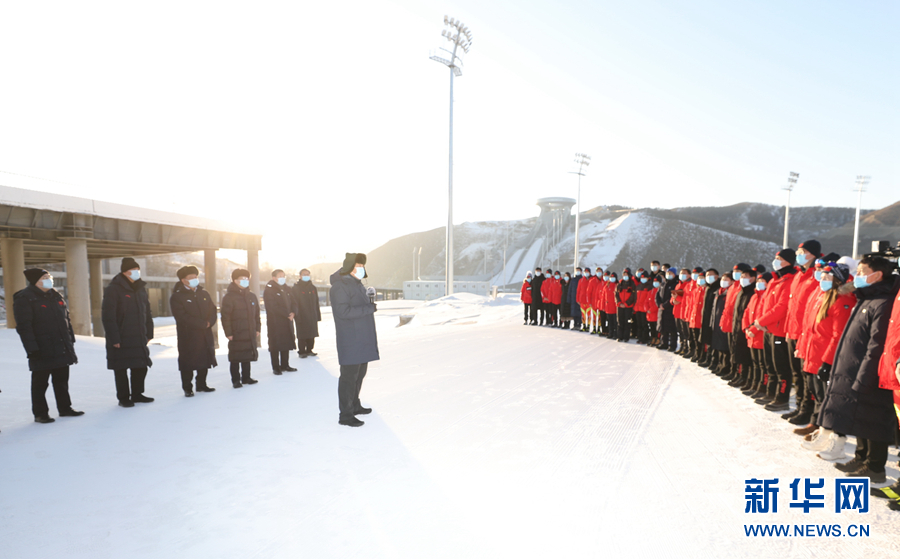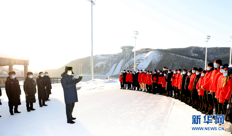 在国家冬季两项中心看台,习近平观看了冬季两项越野滑雪和射击运动员接力训练情况,并看望慰问国家冬季两项、跳台滑雪队运动员、教练员和张家口赛区运行保障团队、建设者代表。习近平亲切地对大家说,我这次来考察北京冬奥会、冬残奥会筹办情况,也是在牛年春节前来看望大家。大家都在为办好一届成功的冬奥盛会而努力,运动员在刻苦训练,建设单位和建设者、保障团队兢兢业业,成功打造了一批世界一流的精品工程,大家的奋斗精神、奉献精神令人感奋。习近平强调,北京冬奥会、冬残奥会所有场馆建设提前一年完成,我国很多冰雪项目在两年多时间里实现从无到有,有的项目达到了世界先进水平,充分体现了党的领导和举国体制、集中力量办大事的制度优势。