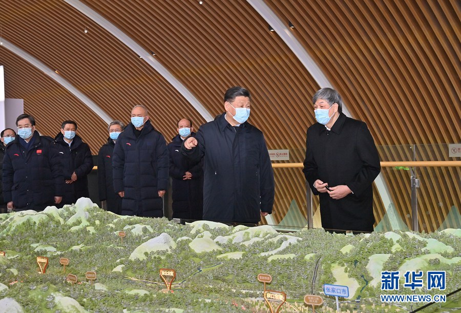 1月18日至20日,中共中央总书记、国家主席、中央军委主席习近平在北京、河北考察,并主持召开北京2022年冬奥会和冬残奥会筹办工作汇报会。这是19日下午,习近平在京张高铁太子城站考察调研。 新华社记者 岳月伟 摄