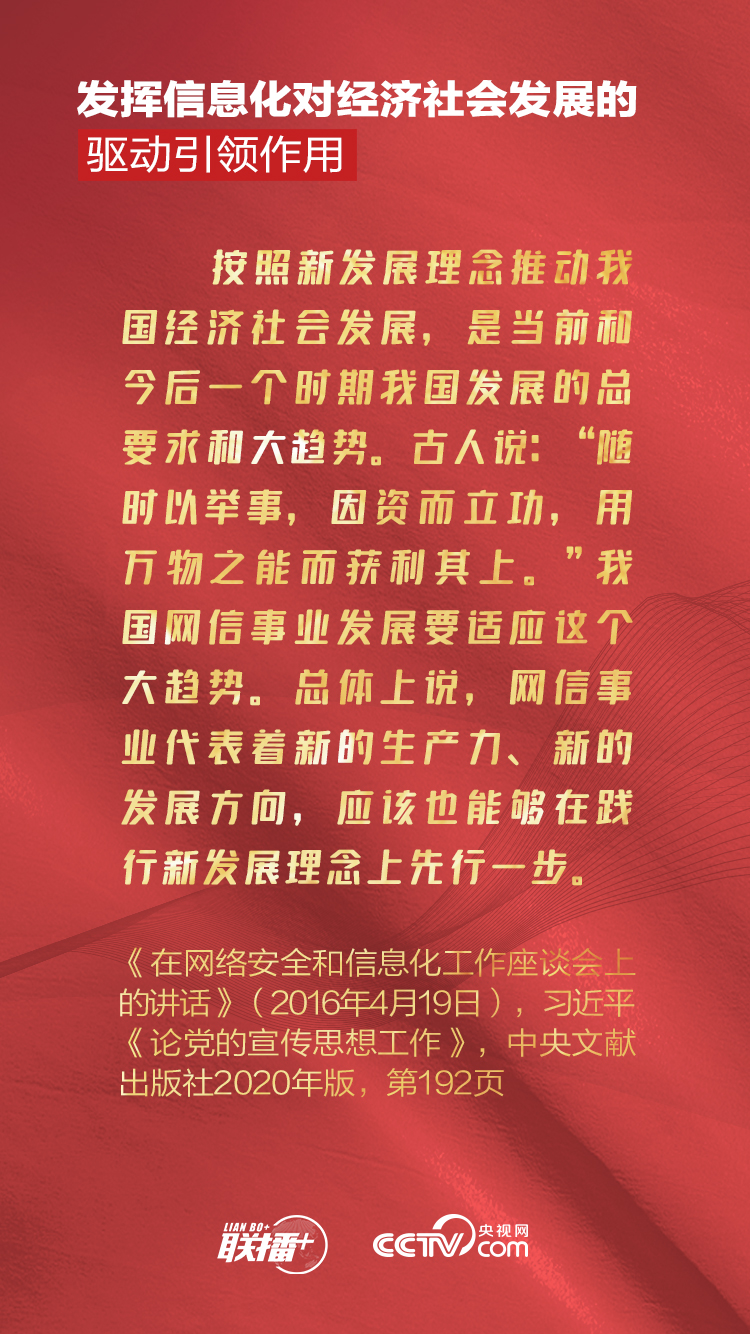 “网信事业代表着新的生产力、新的发展方向”,认真学习习近平总书记关于网络强国的重要论述,具有十分重要的意义。央视网《联播+》栏目特撷取《习近平关于网络强国论述摘编》一书中部分论述,与您一起学习。