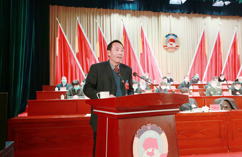索鸿宾代表中共武山县委对大会的召开表示热烈的祝贺,向各位委员、与会同志致以诚挚的问候。他说,2020年,在中央和省、市委的坚强领导下,县委团结带领全县各级党组织和广大党员干部群众,坚持以习近平新时代中国特色社会主义思想为指导,认真贯彻落实党的十九大和十九届二中、三中、四中、五中全会精神,深入学习贯彻习近平总书记对甘肃重要讲话和指示精神,全面贯彻落实中央和省、市委各项决策部署,牢牢把握稳中求进工作总基调,坚持新发展理念,统筹推进疫情防控、脱贫攻坚和经济社会发展,扎实做好“六稳”工作,全面落实“六保”任务,圆满完成了“十三五”确定的各项目标任务,全面建成小康社会胜利在望,交出了一份让党和人民群众满意的答卷。一是脱贫攻坚取得了决定性胜利。二是经济实力稳步提升。三是城乡面貌焕然一新。四是人民福祉显著增进。五是全面从严治党纵深推进。