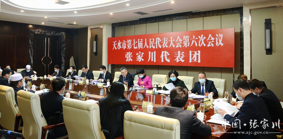 新天水讯 据张家川县融媒体中心消息 2月2日下午,天水市第七届人民代表大会第六次会议在秦州剧院开幕。市人大代表、市委副书记、代市长王国先代表市政府向大会作《政府工作报告》。开幕大会结束后,张家川县代表团认真审议政府工作报告,审查“十四五”规划纲要和计划、预算报告。