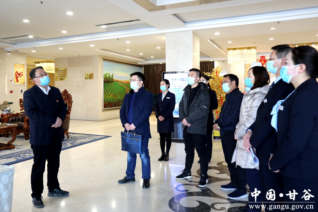 新天水讯 据甘谷县融媒体中心消息 2月3日,甘谷县人大常委会副主任王新民带领县财政局、市场监管局和县医院负责人到赤城国际大酒店,就代表驻地饮食住宿、卫生防疫、安全保障等情况进行检查。