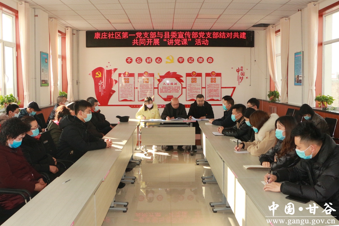 2月5日,甘谷县委宣传部党支部与康庄社区“大党委”第一党支部开展结对共建活动。宣传部党支部和康庄社区第一党支部共计40余人参加了本次活动。
