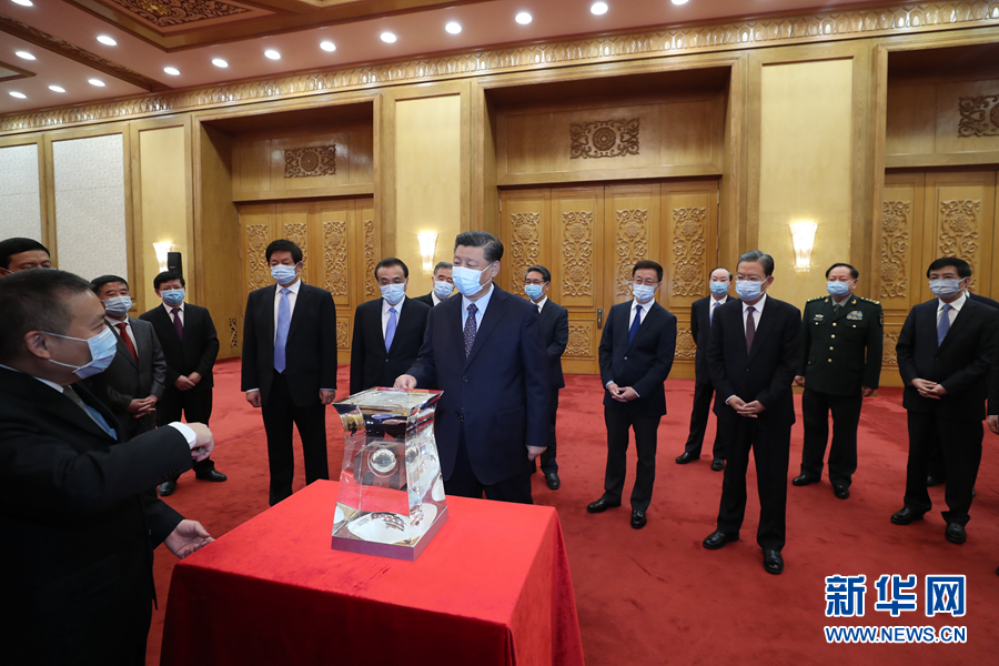 习近平在会见探月工程嫦娥五号任务参研参试人员代表并参观月球样品和探月工程成果展览时强调