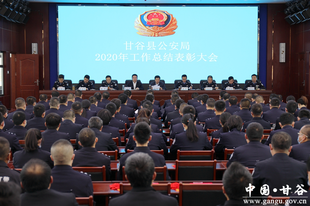 新天水讯 据甘谷县融媒体中心消息 3月9日,甘谷县公安局召开2020年度工作总结表彰大会。县委常委、政法委书记马福胜,副县长、县公安局党委书记、局长张涛出席会议并讲话;县公安局党委副书记、政委赵锦丰主持会议;县公安局党委班子成员,县公安局各所、队、室负责人及受表彰单位和先进工作者代表共240余人参加会议。