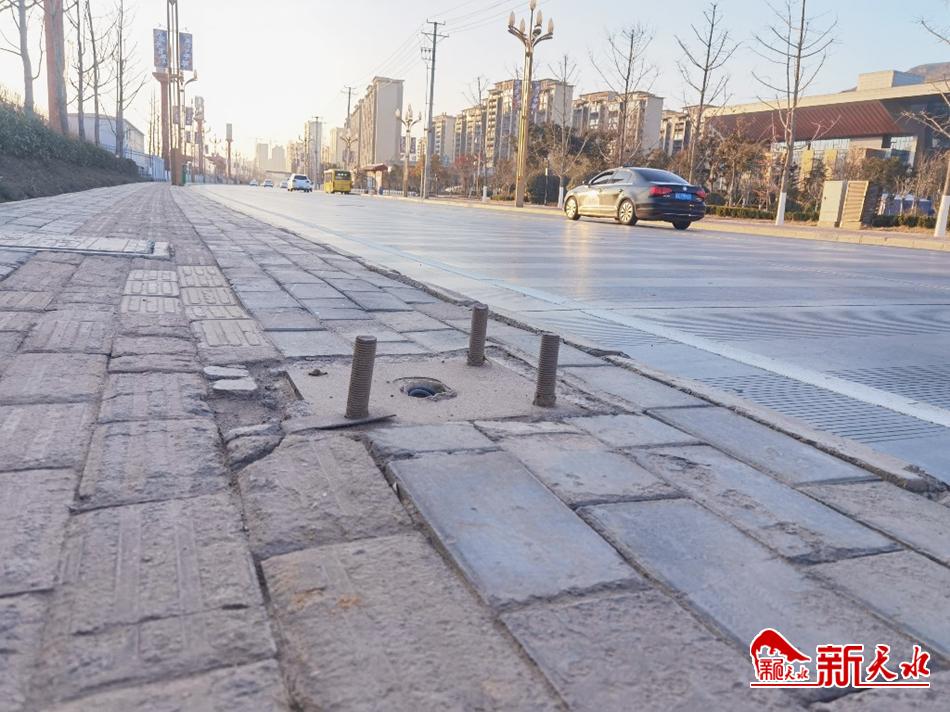 3月14日,在成纪大道中段成纪新城附近的人行道上,裸露在路面上的钢筋条存在安全隐患,希望有关部门尽快处理。