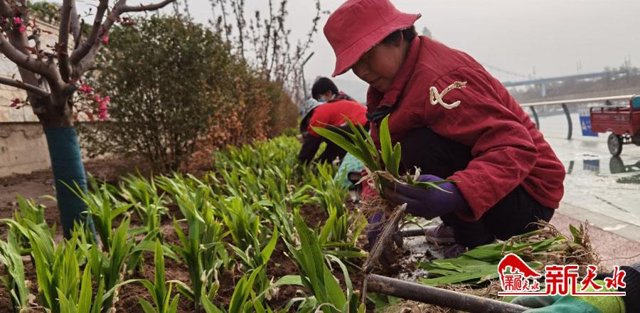 连日来,藉河生态综合治理二期工程绿化工作精心挑选适宜本地生长的花卉和苗木栽植,针对部分路段绿化植物死株、缺株及土壤裸露的现象,及时开展补绿增绿工作,“水清、岸绿、景美”的亮丽风景线正在形成。(新天水记者 陈少娟 摄)