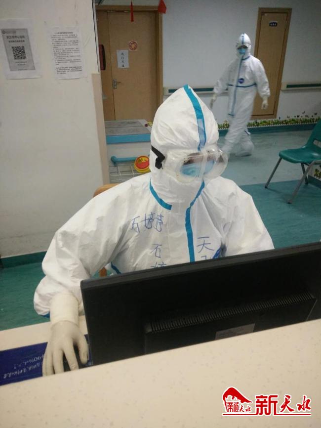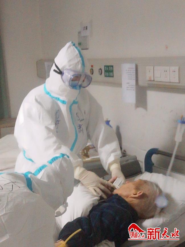 “我工作的地方是武汉市中心医院后湖分院18病区,总共接管床位40张。”石婷婷说,为了保障病区的正常运行,医疗队成立了临时党支部、专家组、后勤保障组、院感组和护理部。临时党支部成立之初,她递交了入党申请书。进入病区后,石婷婷接到通知说马上就要有病人转送过来,他们立马准备,集结在各自的岗位上,等待病人的到来。病人到达了病区,石婷婷开始忙碌起来,为患者办理入住、测体温、量血压、询问病情,给患者吸氧、发药、输液、取咽拭子、送饭、取患者的排泄物等,各项工作都她都有条不紊地进行着。为了减少物资的消耗,石婷婷尽量在更衣前不喝水,全副武装后,不一会就汗流浃背,呼吸都会觉得困难。厚重的防护服、充满雾气的护目镜,使她工作起来感觉很吃力,很普通的一个静脉采血,在这里都是一次考验,但是她都咬牙挺住了,就想着如何尽快减除患者的痛苦,挽救患者的生命。