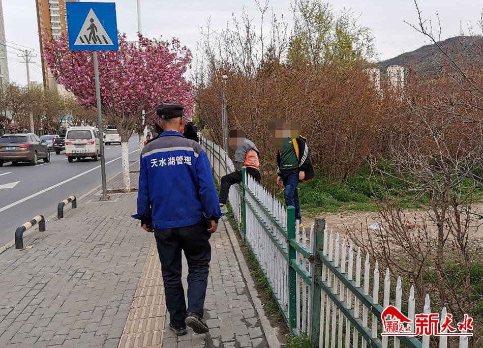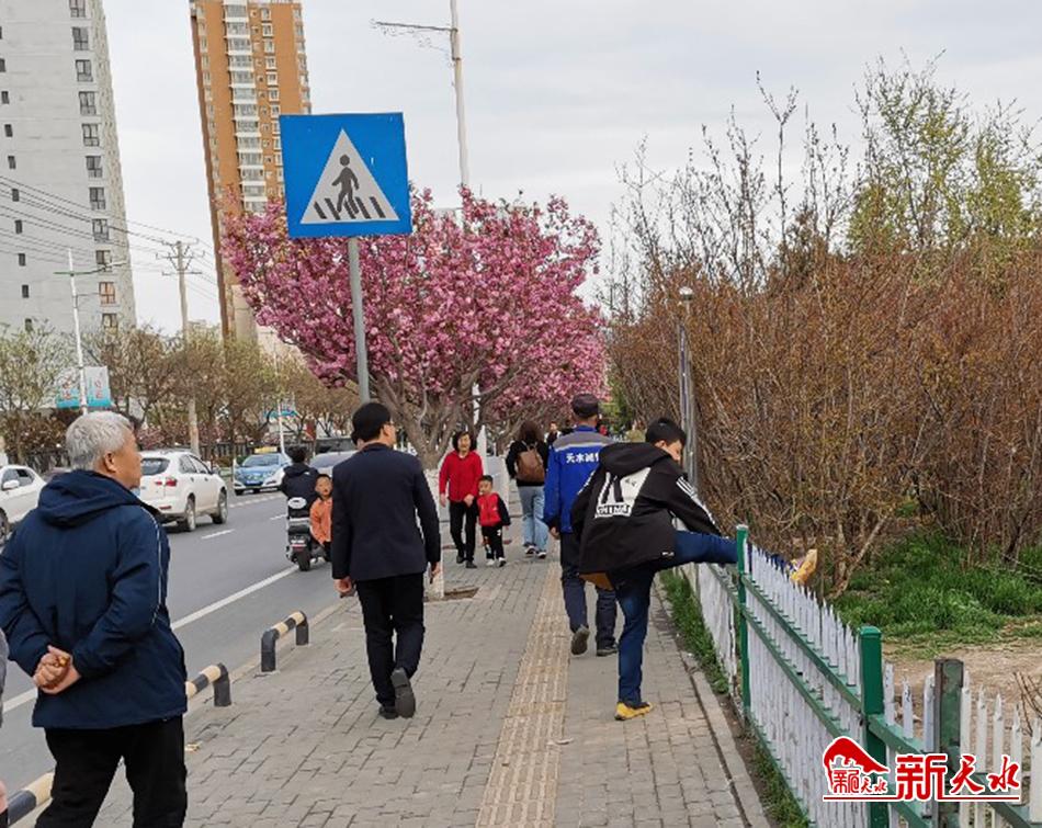 4月11日,在天水市秦州区藉河北路坚家河花鸟鱼虫市场附近,有些行人放着人行道不走,专翻越护栏抄近道,有失文明。夏雨/摄