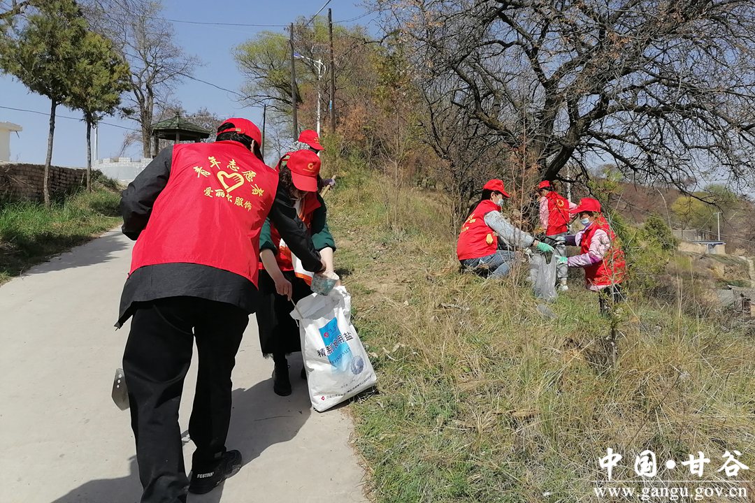 4月16日,共青团甘谷县委携手阳光公益志愿者协会赴金山镇王家山村开展“学党史 办实事——争做乡村振兴青年先锋队”志愿服务活动。团县委全体干部、青年志愿者及部分村民共计50余人参加。