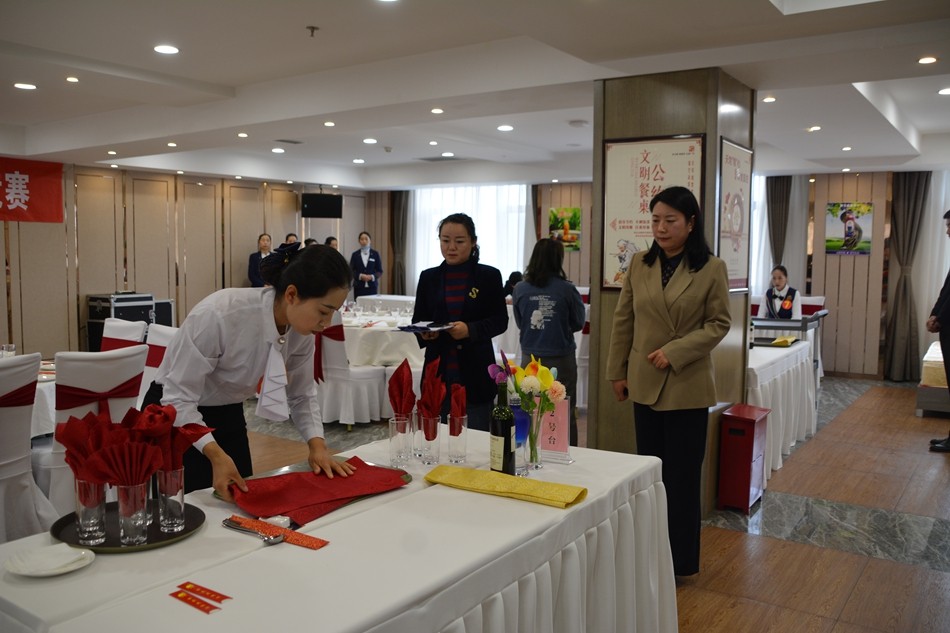 此次竞赛共设置中餐宴会摆台、客房中式铺床两个竞赛项目,每个项目竞赛的最终成绩由专业理论知识笔试、仪容仪表展示、专业理论知识口试和现场操作四部分的成绩组成。竞赛名次按照总得分的高低进行排序,竞赛设个人成绩和团体成绩,团体成绩根据个人成绩计算。