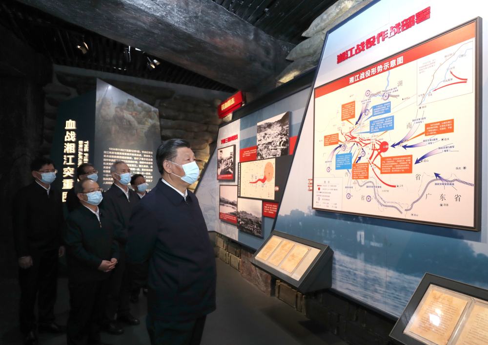 4月25日上午,习近平总书记来到位于广西桂林全州县才湾镇的红军长征湘江战役纪念园,向湘江战役红军烈士敬献花篮,参观红军长征湘江战役纪念馆,缅怀革命先烈、赓续共产党人精神血脉。