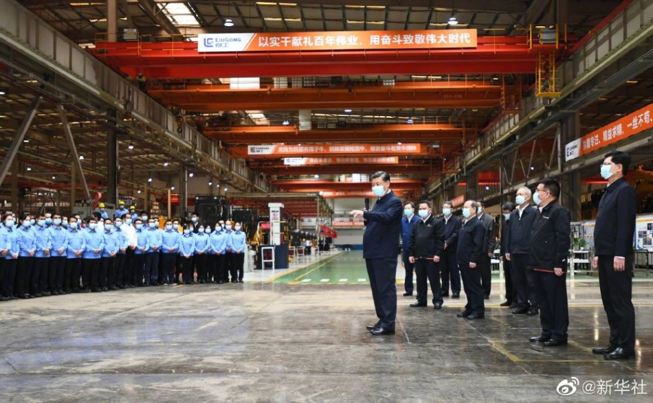 4月26日下午,正在广西考察调研的习近平总书记来到广西柳工集团有限公司,了解企业生产经营和研发攻关等情况。习近平指出,高质量发展是“十四五”时期我国经济发展的必由之路,装备制造业高质量发展更是重中之重。他强调,高质量发展,创新很重要,只有创新才能自强、才能争先,在自主创新的道路上要坚定不移、再接再厉、更上层楼。(文字记者 张晓松、朱基钗;摄影记者 鞠鹏、谢环驰)