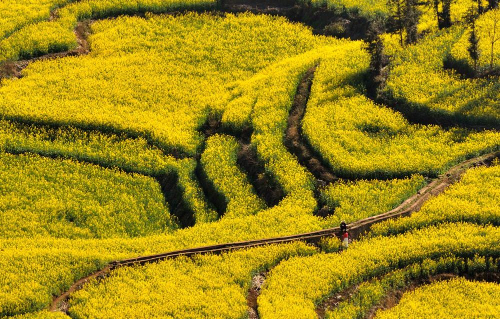 油菜花是南峪一沟的花魁,当之无愧。南峪土地多,作物以冬小麦与油菜为主,油菜花一开,一行行,一溜溜,夹杂着一块块绿油油的小麦,一片片波光粼粼的地膜地,层次分明,整齐有序。南峪的油菜花期长,开花盛。进入四月,一沟的油菜都开花了,金黄的油菜花铺天盖地,炎炎熠熠,燔山熠谷。整个南峪一沟,汹涌着灿烂而辉煌的金色,真是花的海洋,南峪及沟中的村庄,就荡漾在这金黄色的油菜花香中。生活在南峪,是件非常幸福的事。