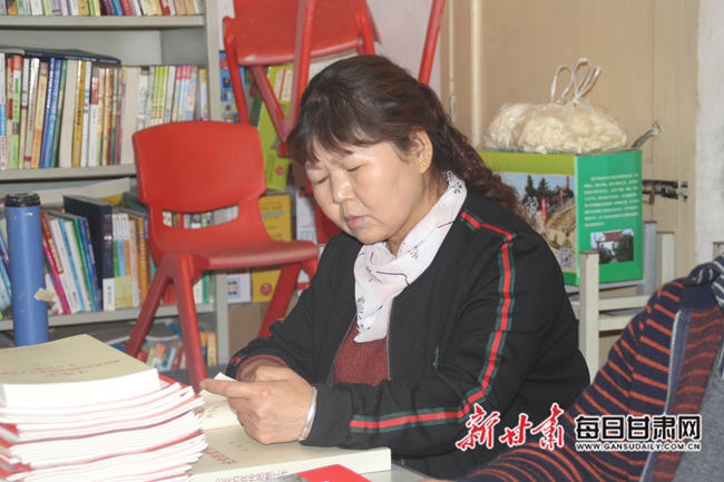 胡大村村民温来弟正在农家书屋读书。新甘肃·甘肃日报记者白永萍/摄
