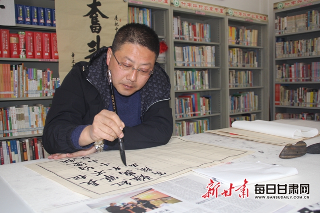 在农家书屋练习书法的什字坪村村民周玉杰。新甘肃·甘肃日报记者白永萍/摄