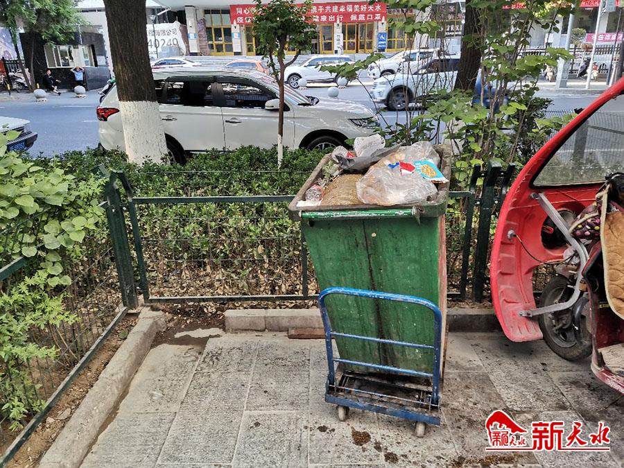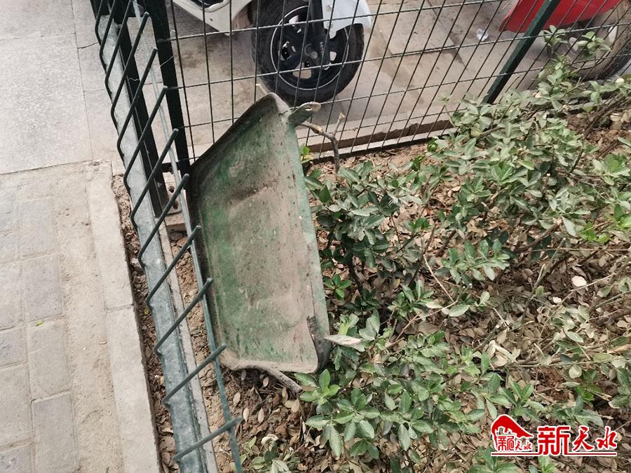 5月13日,在秦州区新华路,一垃圾桶“头手分离”,盖子在绿化带里,垃圾桶“大张嘴”。气温逐渐升高,这样的垃圾桶既不美观,又影响周边环境。□夏雨 摄