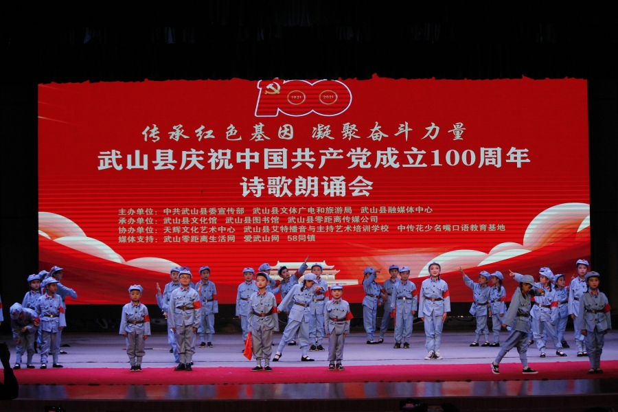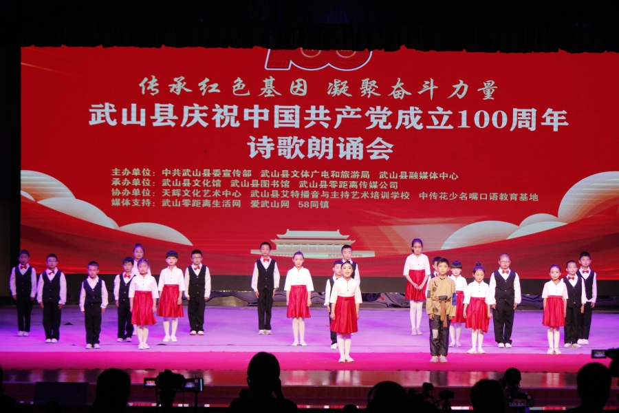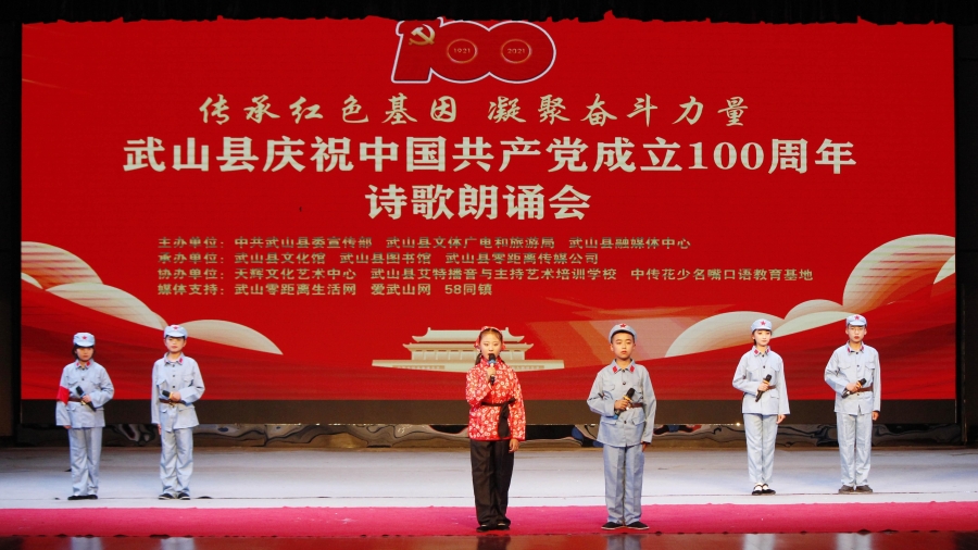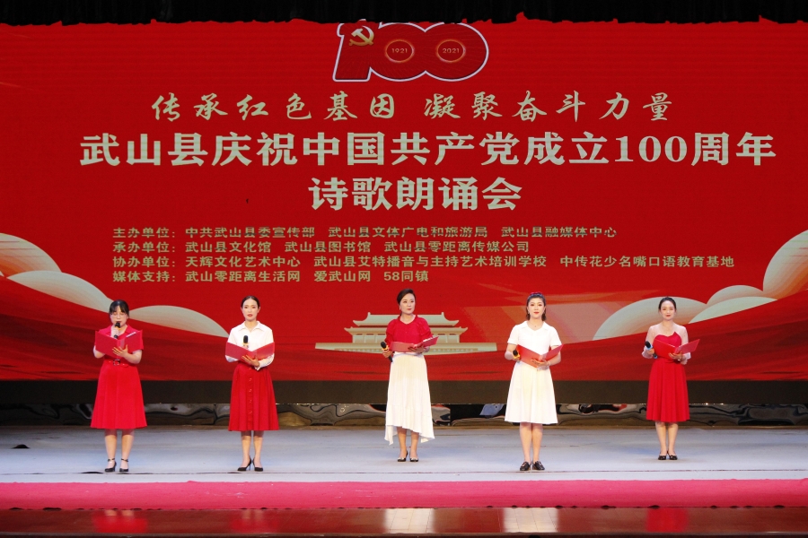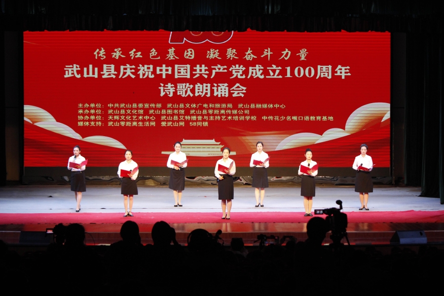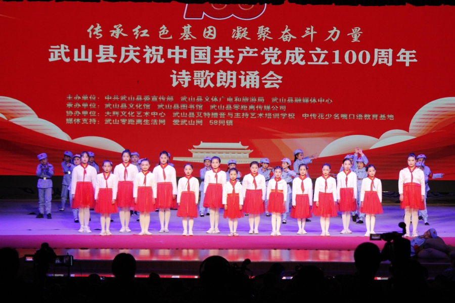 武山县融媒体中心5月16日讯(记者何慧 管秋勇 郭韵)5月15日晚,武山县举办了以“传承红色基因,凝聚奋斗力量”为主题的诗歌朗诵会,庆祝中国共产党成立100周年。