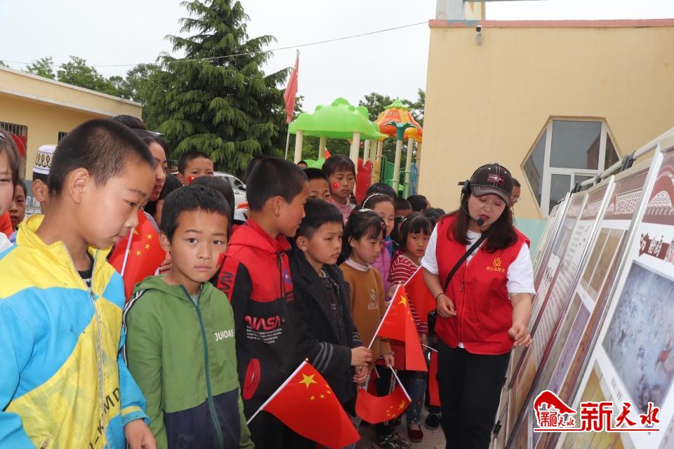 活动开始,博物馆工作人员为孩子们发放了五星红旗,在讲解员的组织下,全校师生参观了“流动博物馆”,了解了张家川县悠久的历史文化和马家塬独特的西戎文化。