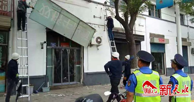西关中队前期对存在安全隐患的陈旧破损的户外广告、牌匾、门面装饰进行全面排查,下发《责令限期改正通知书》,督促其限期整改;对逾期未进行整改的,依法予以拆除。目前共拆除不符合规范门头牌匾12块,使得辖区内的门头广告更加整洁、美观。(通讯员 王敏 摄)
