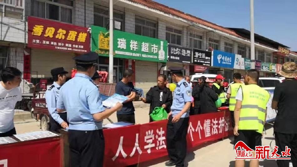 新天水讯【记者 张彬霞】6月7日,在麦积区公安局元龙派出所的引导下,元龙镇政府、司法所、小陇山森林派出所、太碌林场在元龙综合市场联合开展法制宣传活动。工作人员通过现场解答、发放宣传资料、摆放宣传展板、悬挂横幅等形式向群众宣传普及法律知识、禁毒、电信诈骗等相关知识。