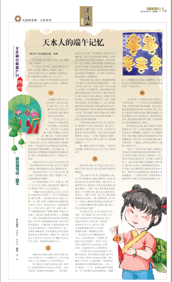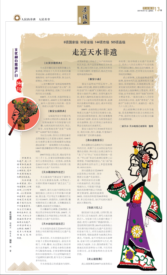 在“文化和自然遗产日”来临之际,为唤醒更多人对传统文化的热爱,天水日报社全媒体文化中心特别推出大型策划:人民的非遗 人民共享