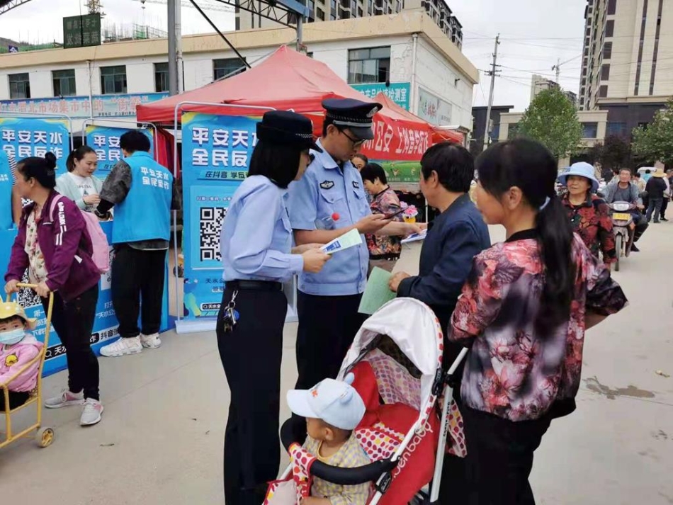 活动现场,公安民警为群众发放防范打击电信诈骗等宣传资料,向群众宣讲新发高发诈骗手法、识骗防骗技巧以及如何安全使用手机接收电话、短信、汇款,并宣传推广了天水反诈“金钟罩”警民联防平台。当天现场发放各类宣传资料500余份,解答群众咨询50余人次。