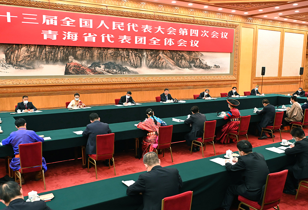 2021年3月7日,中共中央总书记、国家主席、中央军委主席习近平参加十三届全国人大四次会议青海代表团的审议。新华社记者 李涛 摄