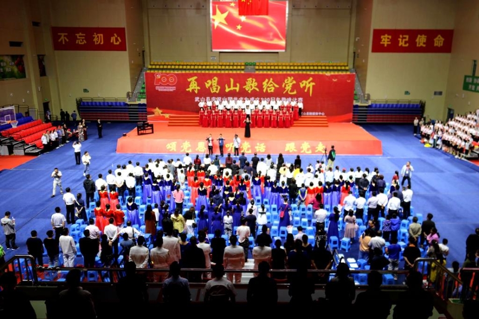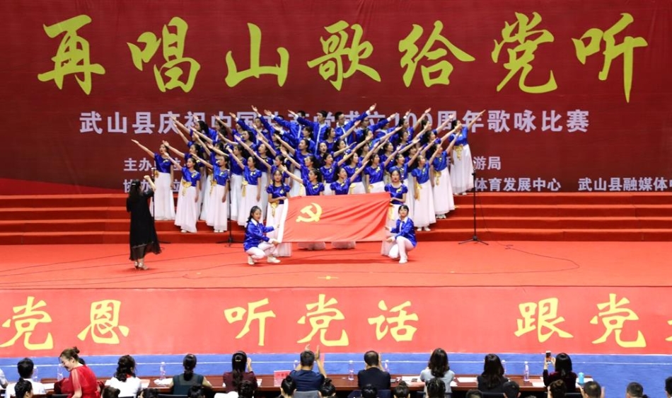 武山县融媒体中心6月19日讯(记者 郭永强 薛妍 杨彦春 管秋勇)6月18日晚,武山县庆祝中国共产党成立100周年“再唱山歌给党听”歌咏比赛在武山县体育馆开赛。