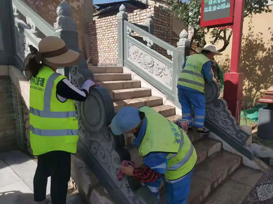 加强基础设施维护,靓化城市容颜提升城市品质。结合创建文明城市进一步提升城市形象,集中力量更换维修油饰城市环卫基础设施,截至目前伏羲城内65个果皮箱、29个垃圾桶以及城区其他区域2000个果皮箱、600个垃圾桶、500个手推车油饰维修更换已全部完成。针对伏羲城步行街沿街门店的部门门窗、步行街走廊、仿古建筑、墙面出现的不同程度掉漆、破损现象,组织专业人员进行重新油饰粉刷修补,油饰粉刷4500平方米。同时对伏羲城内建筑物、道路全部进行清理冲洗,确保伏羲城步行街“颜值”提升,通过完善城市环卫基础设施,不断靓化城市环境,让秦州古城更添魅力。
