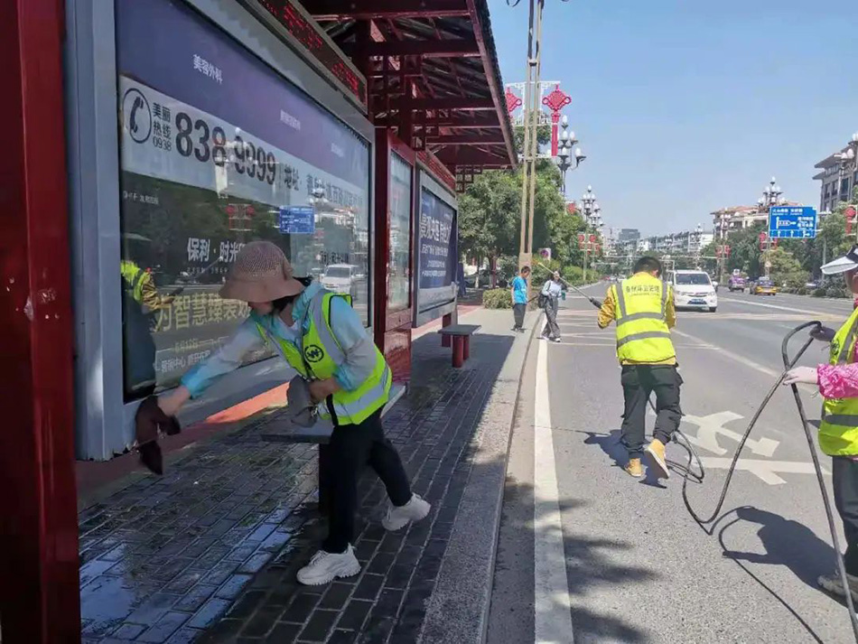 启动“节会模式”确保环卫作业质量提质增效。延长清扫保洁作业时间,加大道路深度保洁精细化保洁力度。“机械保洁+人工保洁”无缝衔接、有机结合,洒水车和扫地车前后同时高密度叠加作业,对城区主次道路、人行道、辅道进行全面高质量机扫冲洗,实现路见“本色”,保洁人员对道路护栏周边和绿化带加强不间断巡回捡拾,清理垃圾死角,展开拉网式大清扫,对城区果皮箱、烟头收集器进行定时清掏,确保垃圾不冒尖、不外溢。